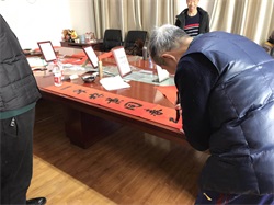 日,咸陽書協副主席一行三位書法家老師應我司總經理吳先生的邀請,為公司親筆題字留下了墨寶。為我司員工帶來了特殊的祝福。