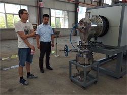 隨后,吳先生陪同客戶參觀了工廠,客戶在設備前詳細的了解了設備的運行機理,并且對著實物拍攝了照片。