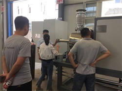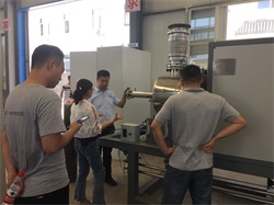 2019年8月12日,湖南某知名企業(yè)客戶到我司考察交流。我司總經(jīng)理吳先生以及銷售張工接待了客戶,在會議室客戶為我司介紹了他們單位的基本情況以及發(fā)展思路。吳先生也給客戶介紹了我司的基本情況以及研發(fā)歷程。客戶針對他們的工藝和吳先生進行了有效的交流,隨后在參觀工廠的時候,客戶又針對他的工藝和設(shè)備的配合部分和吳先生進行了友好的交流。