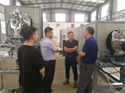 隨后吳先生陪同客戶參觀了我司生產車間,在設備旁客戶針對自己產品的工藝又和設備的配合進行了分析。